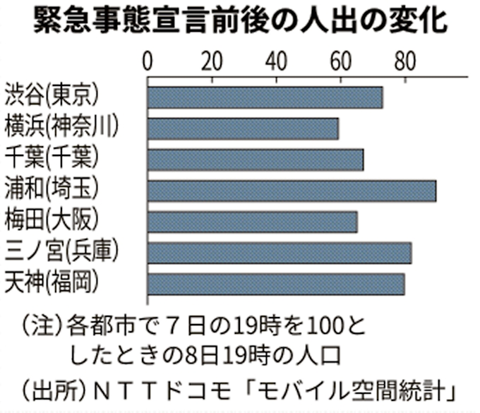 緊急事態宣言で人の動き少なく Nttドコモ調べ 日本経済新聞