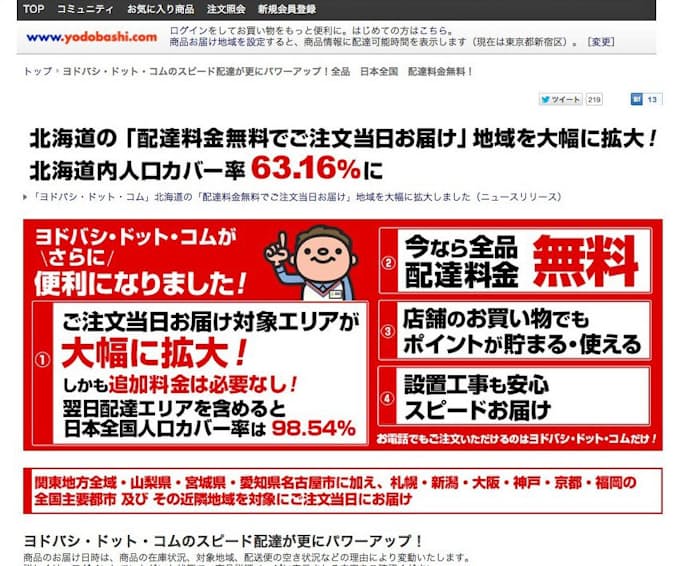 ヨドバシカメラ ネット通販の無料当日配送サービスの対象地域を長崎県と大分県に拡大 ネットショップ担当者フォーラム