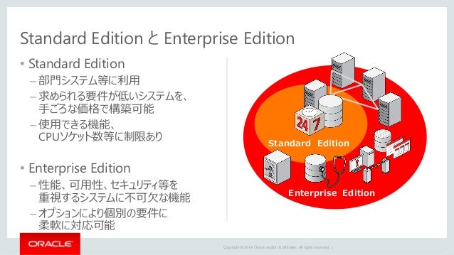 Oracle NoSQL Database Enterprise Edition 3 () より、Oracle NoSQL Database Enterprise Edition 3 がリリースされています。 V Oracle NoSQL Database Enterprise Edition 317 最新のドキ. Oracle Database Standard Edition 2 Processorライセンス 2,100,000円 Real Application Clustersの機能はOracle 9i以前のバージョンおよびOracle Database 19c以降のバージョンでは利用不可. 現在、"ライセンス込み" モデルでは、Oracle Standard Edition One および Oracle Standard Edition 2 がサポートされています。詳細については、Amazon RDS for Oracle のウェブサイトを参照してください。 Q Amazon RDS for Oracle はどのようにサポートされていますか?.
