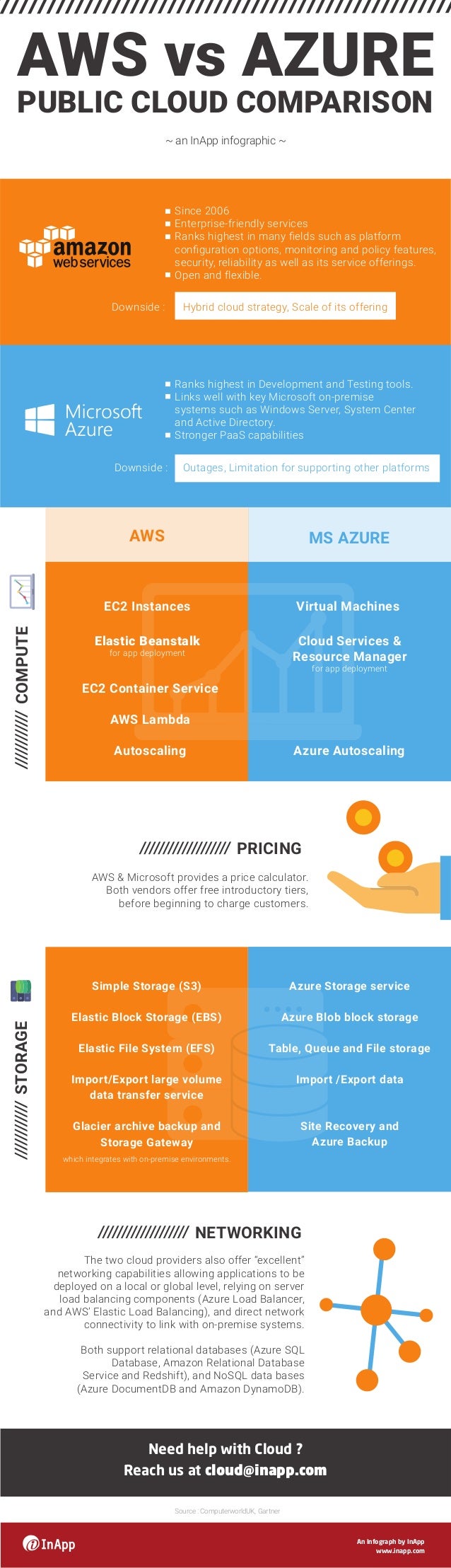 Publishing an app to Azure App Services or Cloud Services takes away all of the headaches of deploying apps and managing servers For Microsoft shops, Azure will hold a strong edge Although, AWS supports Windows, SQL Server and other technologies that NET developers are used Amazon AWS has a great SDK for NET. Microsoft commercial cloud, Azure vs Amazon Web Services is nice storyline, but misguided comparison Microsoft Azure vs AWS is a fun comparison, but Microsoft's commercial cloud is more akin to. Ondemand cloud instance pricing AWS vs Azure vs Google vs IBM For each of the six scenarios below, you can see the hourly ondemand (OD) price for each cloud and then the hourly price per GB.