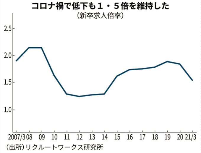 21年卒求人倍率1 53倍 0 3ポイント低下も高水準 日本経済新聞