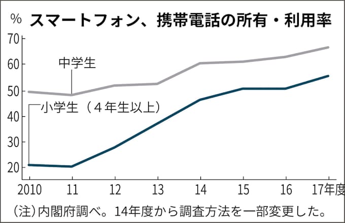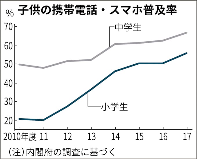 小中学生の携帯 スマホ普及率6 7割 原則禁止見直し 日本経済新聞