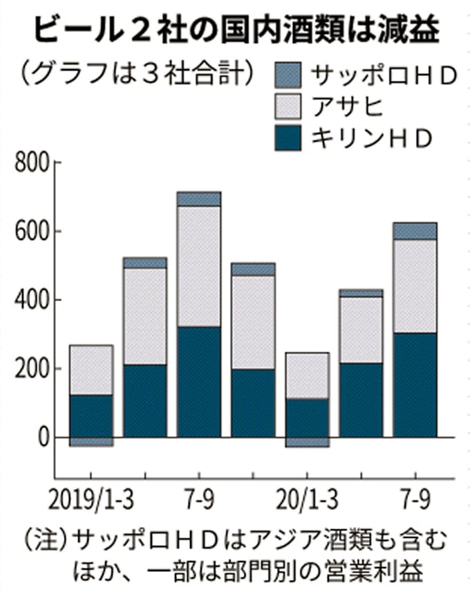 ビール大手 業務用苦戦 7 9月 4四半期連続減益 日本経済新聞