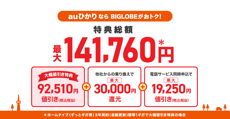 Biglobeのauひかり 特典総額最大122 500円