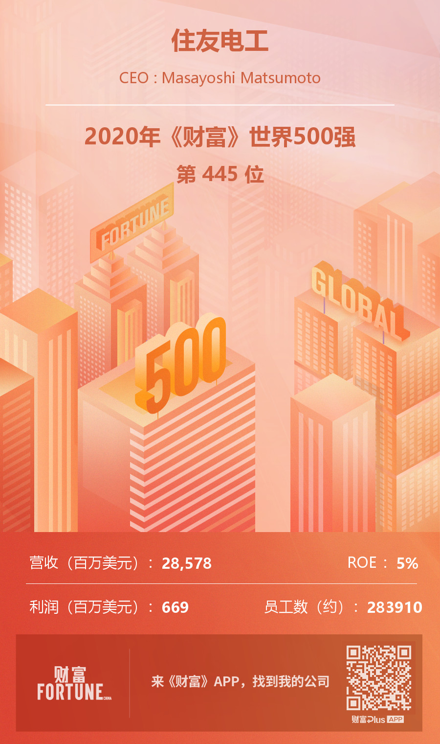 住友电工 18年世界500强第425位 企业排名 历年年报数字 财富500强情报中心