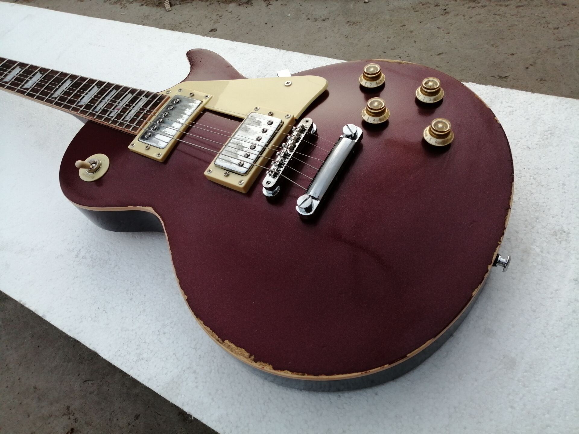 Custom Shop 1959 Heavy Relic Red Crimson Aged Top Electric Guitar Black Back One Piece Neck Body Little Pin Tone Pro Bridge Tulip Tuner Electric Acoustic Guitars Acoustic Electric Guitars For