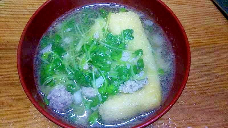 かいわれ豚ひき肉油揚げのスープ 中華味 レシピ 作り方 By Flep 楽天レシピ